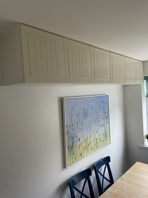 Be creative with tall vertical bookcases and add ceiling height cupboards to your walls. I installed these to hide an ugly electric meter, but they are also perfect for hiding my jigsaw puzzle addiction.