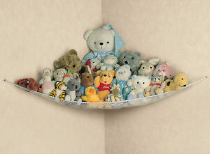 Beds are the obvious solution for storing teddies, but it can take ages to sort out what to sleep with, remove the rest and then put them back every morning. Most kids have one or two must have teddies so encourage them to pop just those on the bed. To store the rest, I love the hammock idea: It’s great for kids that want to keep the teddies close and in sight. For older kids that don’t want them in sight but are not ready to re home them, try a vertical storage solution – I love these colourful plastic-coated bags.